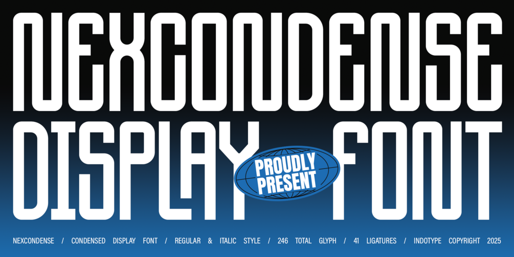 NexCondense is a powerful and space-efficient condensed display font engineered for maximum impact in limited space. Its tall, narrow letterforms project confidence and modernity, making it an ideal choice for commanding attention in dense layouts where every pixel or millimeter counts. Designed with both a Regular and a dynamic Italic style, this font family offers versatility for creating hierarchy and motion within tight design frameworks. Boasting a comprehensive character set of 246 glyphs and an impressive 41 ligatures, NexCondense provides extensive creative control for crafting unique wordmarks and fluid typographic compositions. This font excels in environments that demand bold statements within confined areas—think editorial headlines, tech dashboards, sports branding, packaging sleeves, and urban streetwear graphics. NexCondense is the definitive tool for designers who need to say more with less space, without sacrificing an ounce of style or legibility.